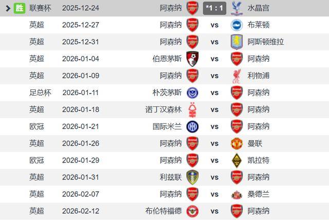 然而,随之而来的将是令人窒息的密集赛程。一月份,阿森纳将迎来9场硬仗,平均每三到四天就有一场比赛,其中更是包括与利物浦、曼联、切尔西等强队的直接对话,每一场都至关重要。